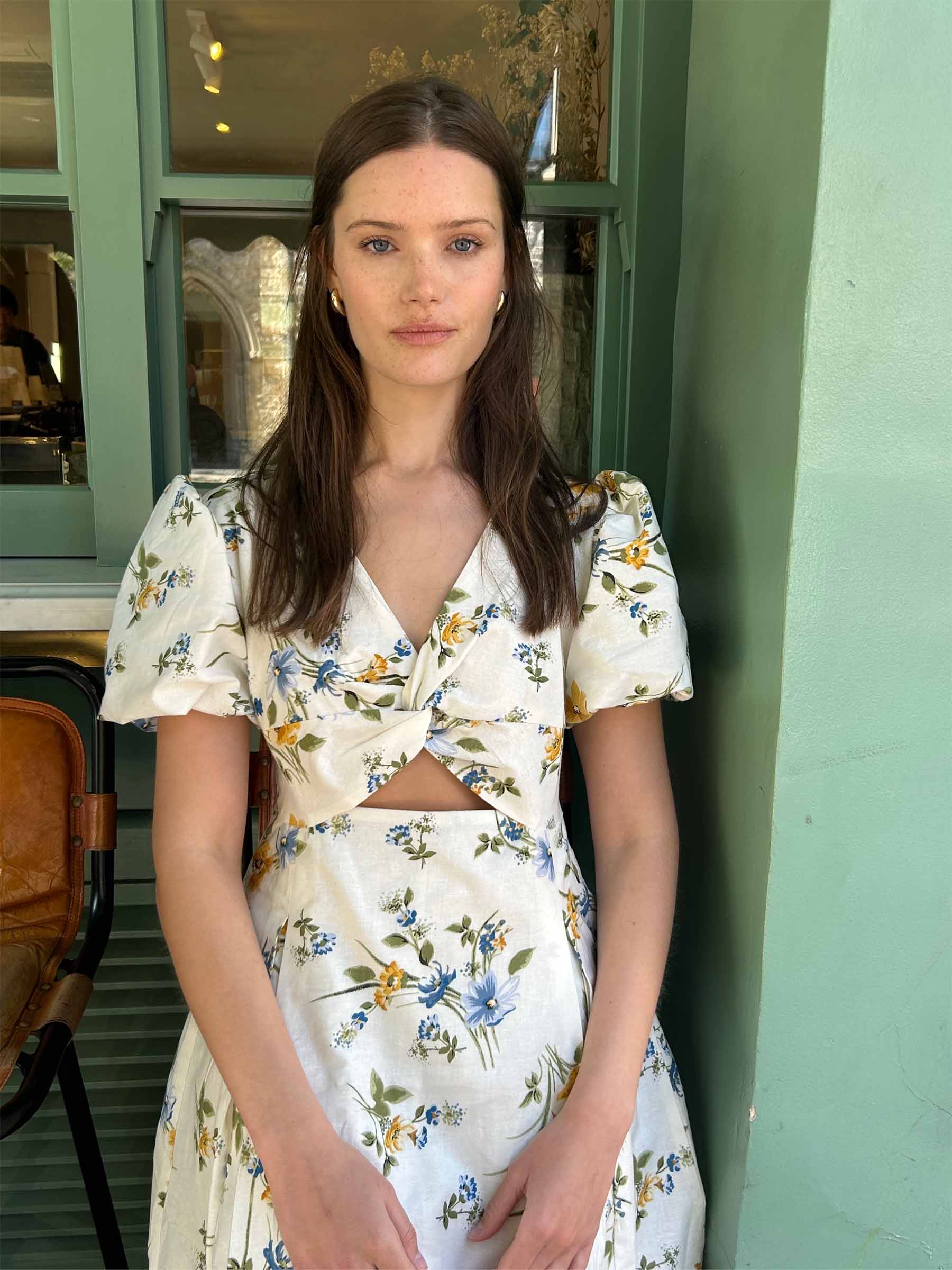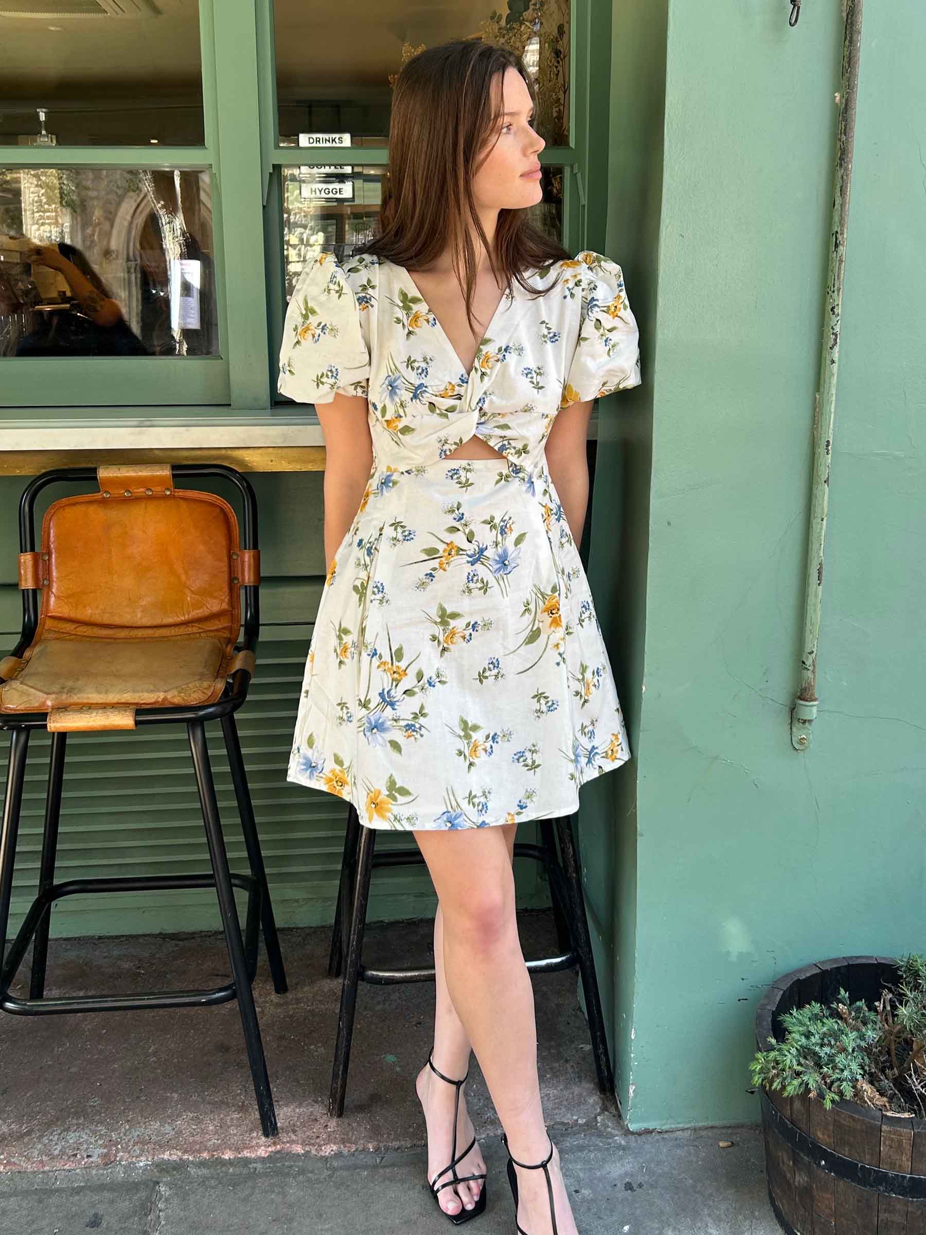 Breeze into summer with the effortlessly charming Leah dress, crafted from a soft cotton and linen blend, featuring a romantic floral print. Framed by a V-neckline, a subtle front twist and playful cut-out that adds a modern edge to its chic style.