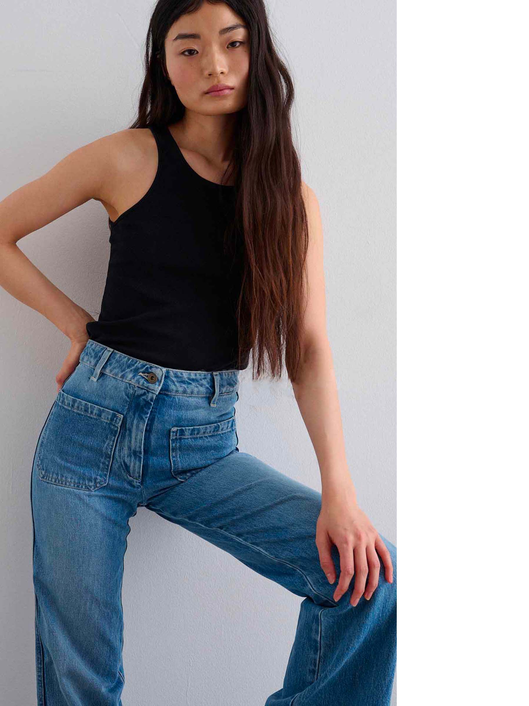 The Daphne jeans are crafted in Portugal using an organic cotton denim fabric, sourced from Italian manufacturer Candiani Denim, founded in 1938. A high waistline and a long, relaxed leg gives the jeans a modern silhouette.