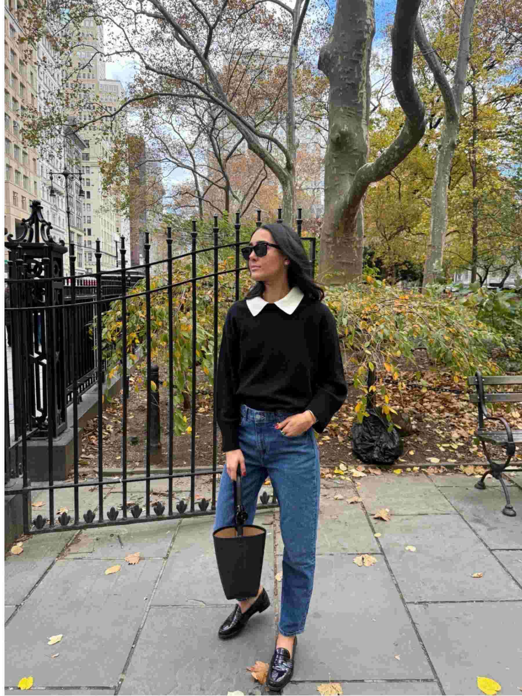 This luxurious wool and cashmere blend sweater offers ultimate comfort, a slightly oversized fit  -  perfect for a relaxed yet sophisticated look. Featuring ribbed cuffs and hem for added texture, it is elegantly finished with a sophisticated cream-white collar, making it a timeless piece for any wardrobe.