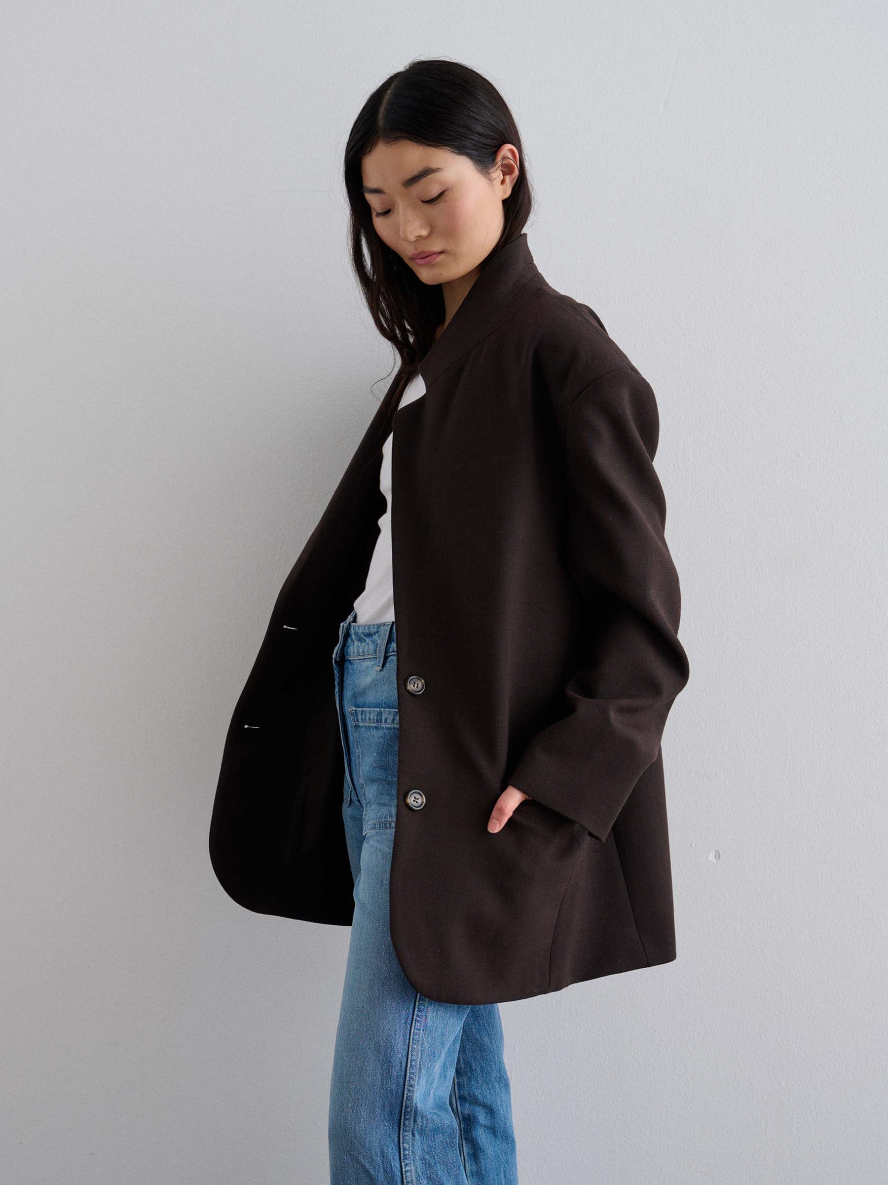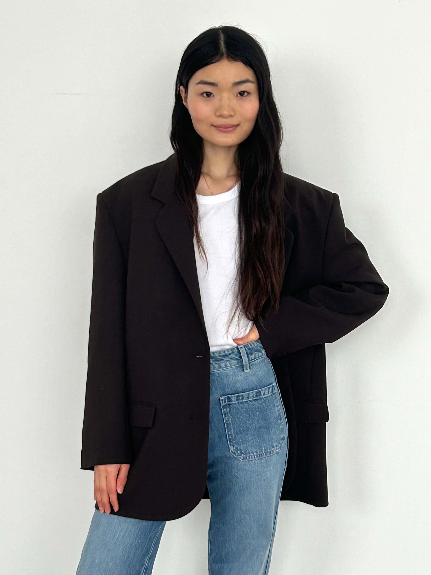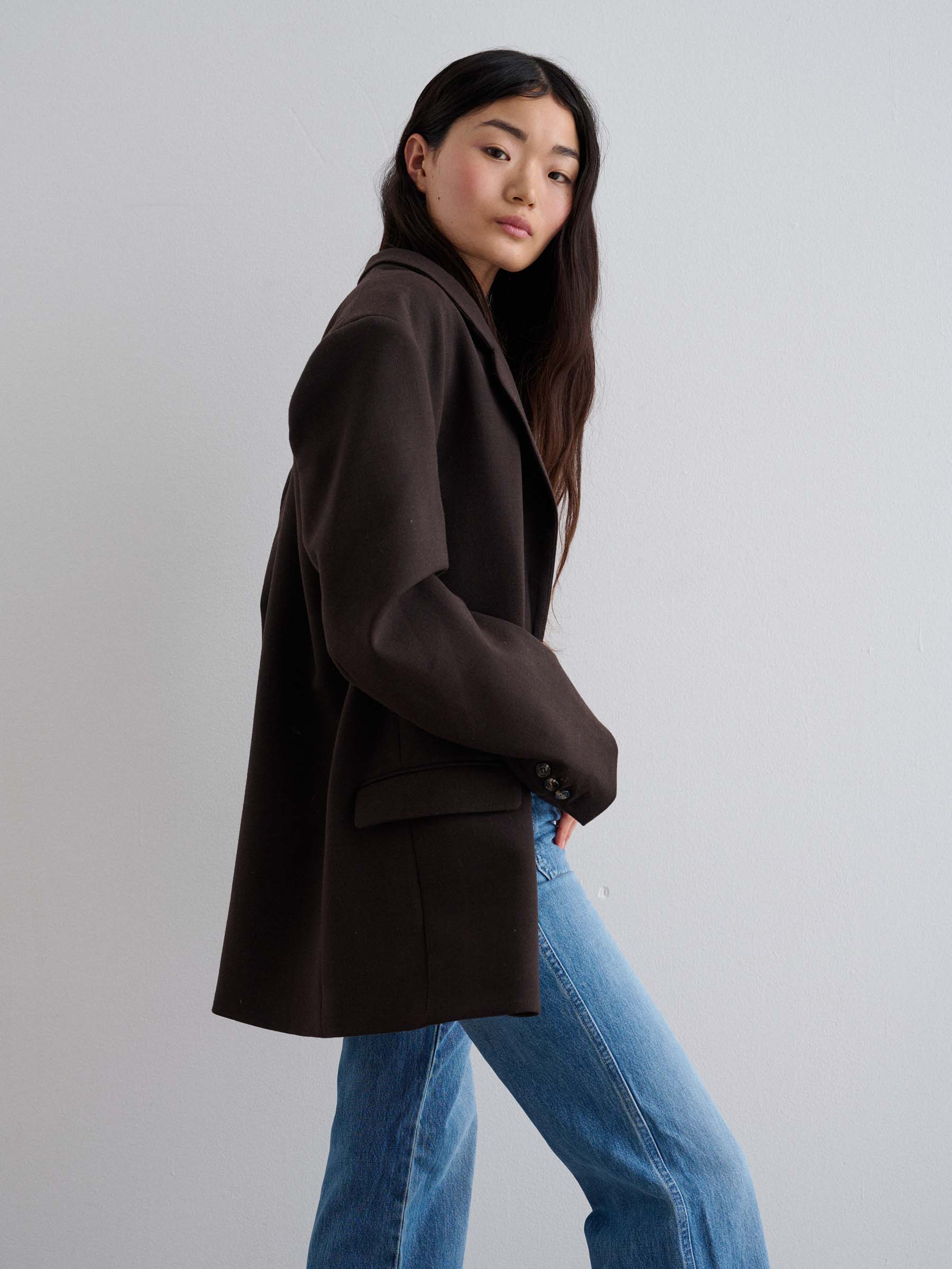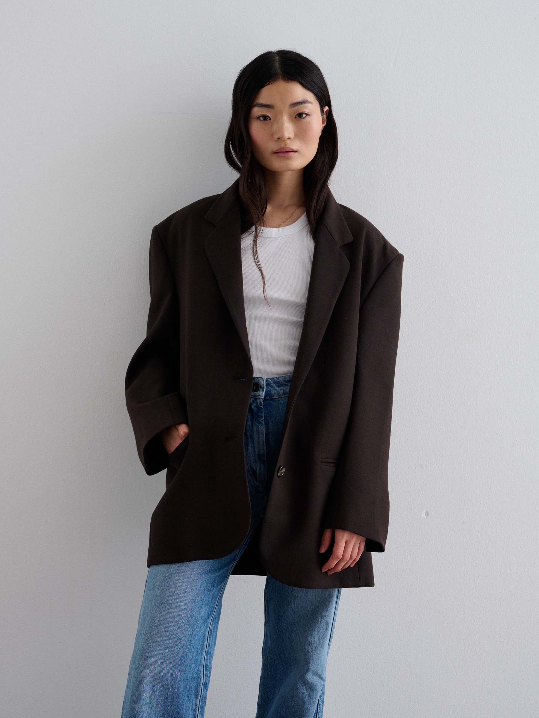 Glúmur’s signature blazer is woven from a mid-weight wool fabric, padded shoulders and an oversized but well-tailored fit. Creating a chic and modern look, available in a classic colour to pair perfectly over denim or trousers.