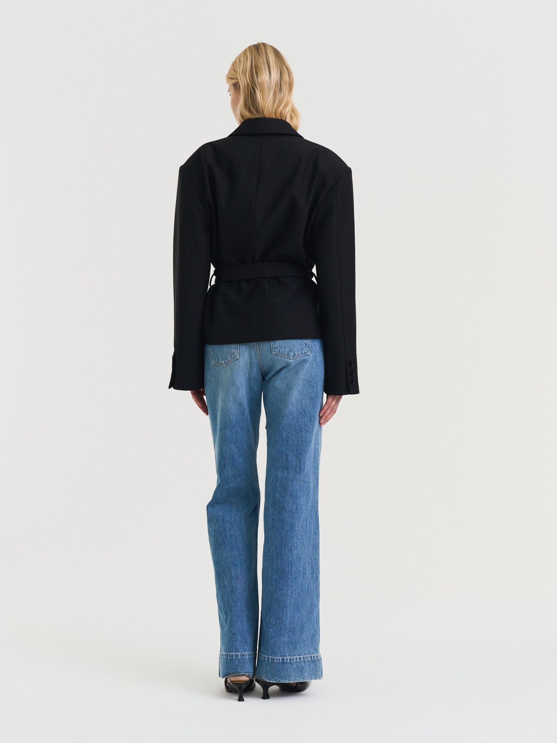 Meet our best-selling Theo blazer. We're always drawn to tailoring that feels strong but still feminine and Theo captures that balance perfectly. The padded shoulders give it structure, while the detachable belt cinches the waist for a really flattering, sculpted shape. The fabric has a beautiful weight to it, which makes the fit sit even better on the body.
