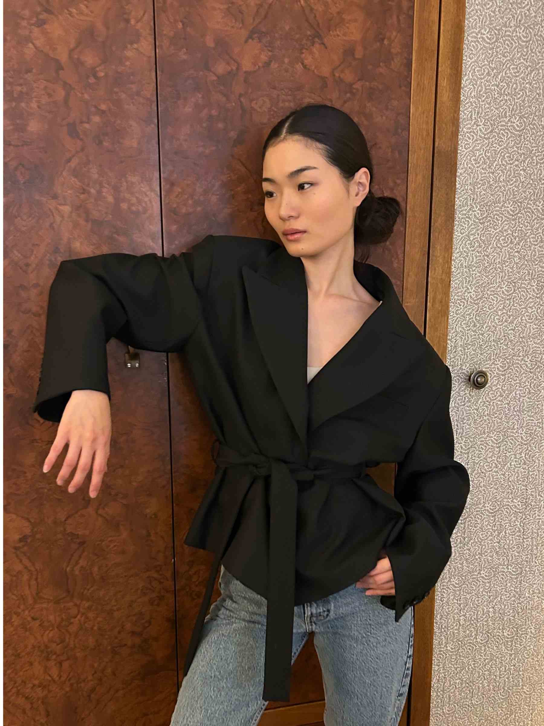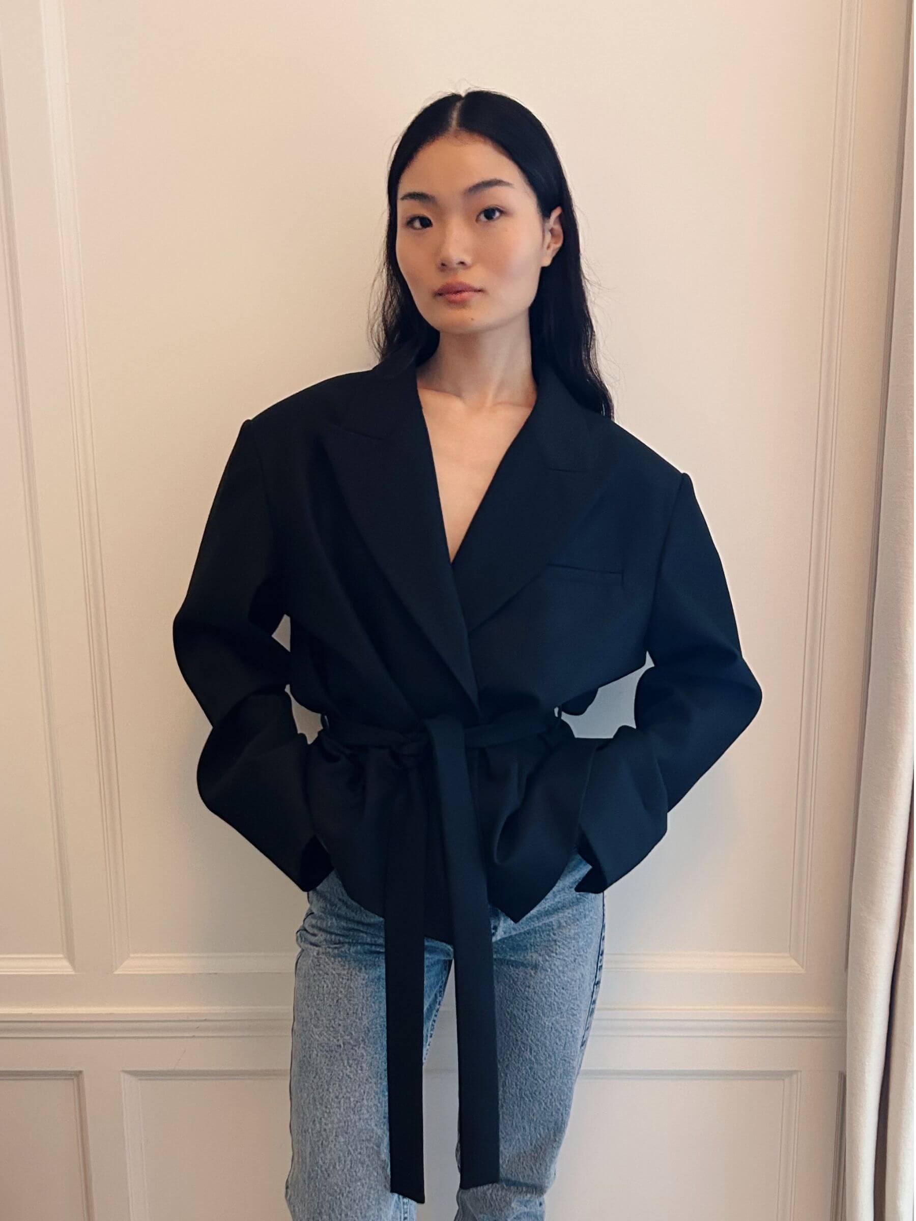 Meet our best-selling Theo blazer. A classic tailored jacket with padded shoulders and a detachable belt that cinches the waist. Designed for quiet confidence, the Theo blazer balances strength and femininity effortlessly. Crafted with attention to detail and a timeless silhouette, it transitions seamlessly from boardroom meetings to evening outings. Whether layered over a crisp blouse or styled with your favorite jeans, the Theo blazer elevates every look with understated sophistication.